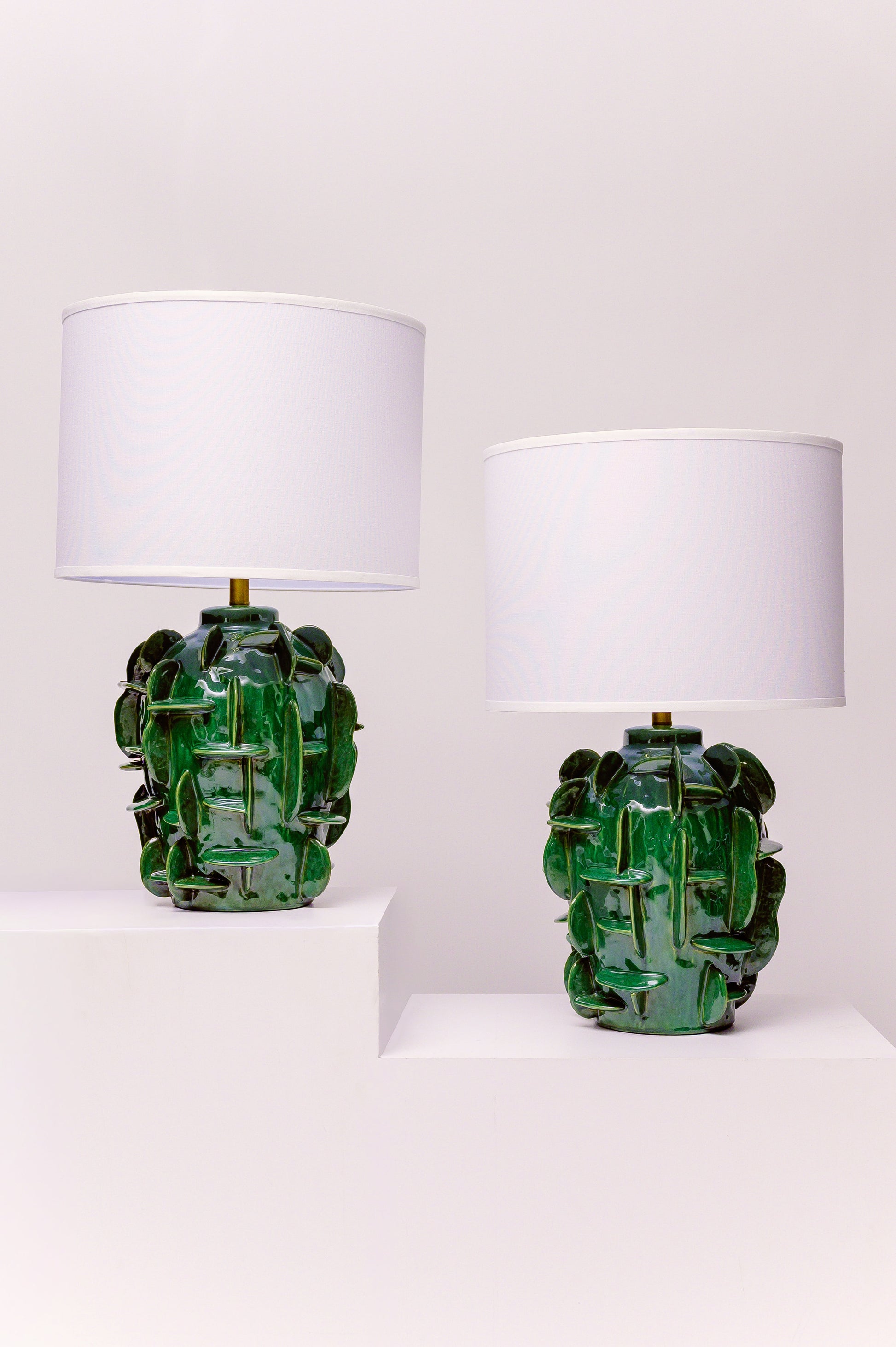 A striking ceramic base fits right in beneath a sleek linen shade, offering an element of unexpected sophistication to desks and nightstands.
